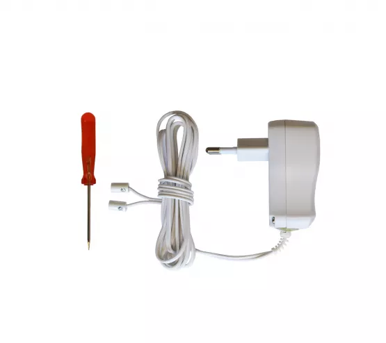 Napájecí adaptér je v bílé barvě a je určen výhradně pro vnitřní použití.