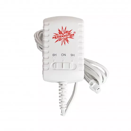 Originální napájecí adaptér s časovačem Herrnhuter® je určen pro bezpečné připojení a rozsvícení LED hvězd Herrnhuter ve velikostech 8 a 13 cm.